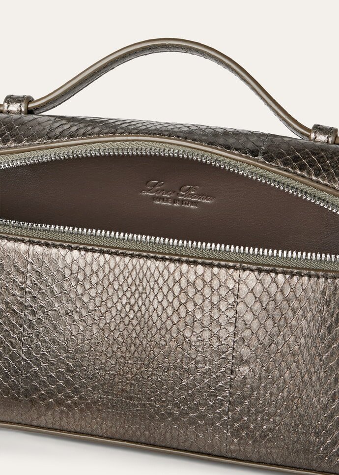 Versatile and endlessly refined, the Extra Pocket L19 is a quintessential Loro Piana pouch with timeless charm. It is crafted from exclusive snakeskin, coated with a near-imperceptible metallic film for a touch of embellishment. The petite accessory can be carried crossbody or in hand, with the shoulder strap removed.