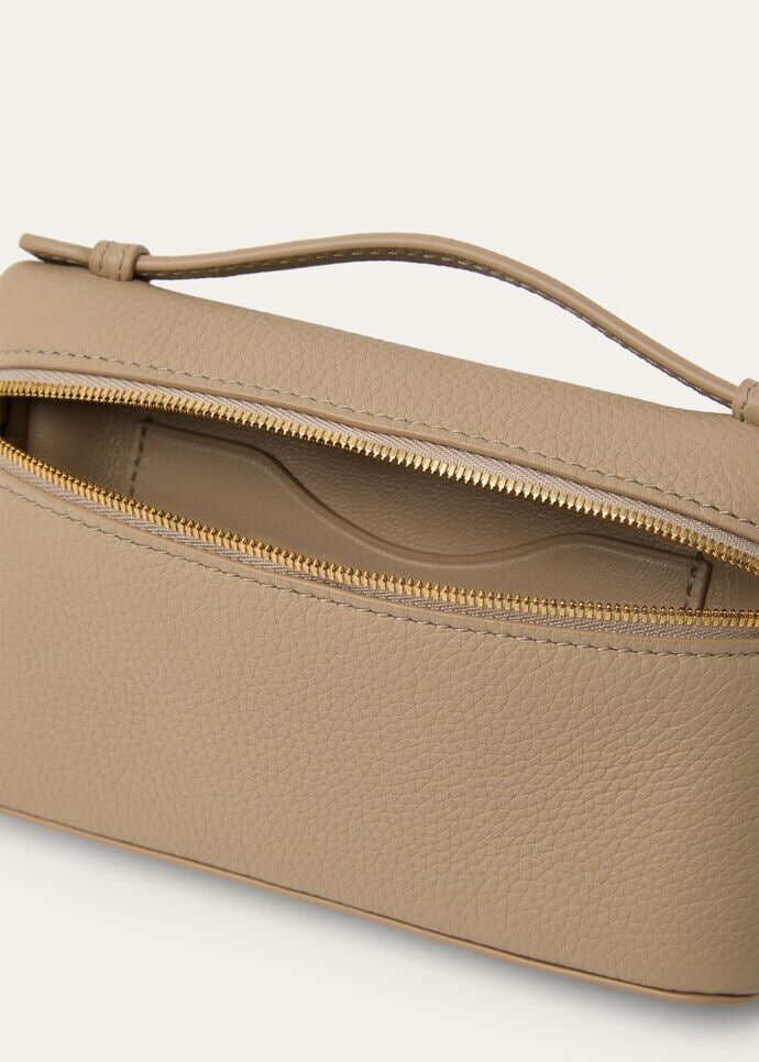 Inspired by the iconic shape of the Extra Pocket, this contemporary mini pouch with zip is crafted in sumptuous tumbled calfskin for everyday storage that’s both luxurious and practical. Its interior cardholder holds cards securely with added protection. Finished with a removable wrist strap, Loro Piana’s renowned craftsmanship ensures that the fine leather will only improve with time.