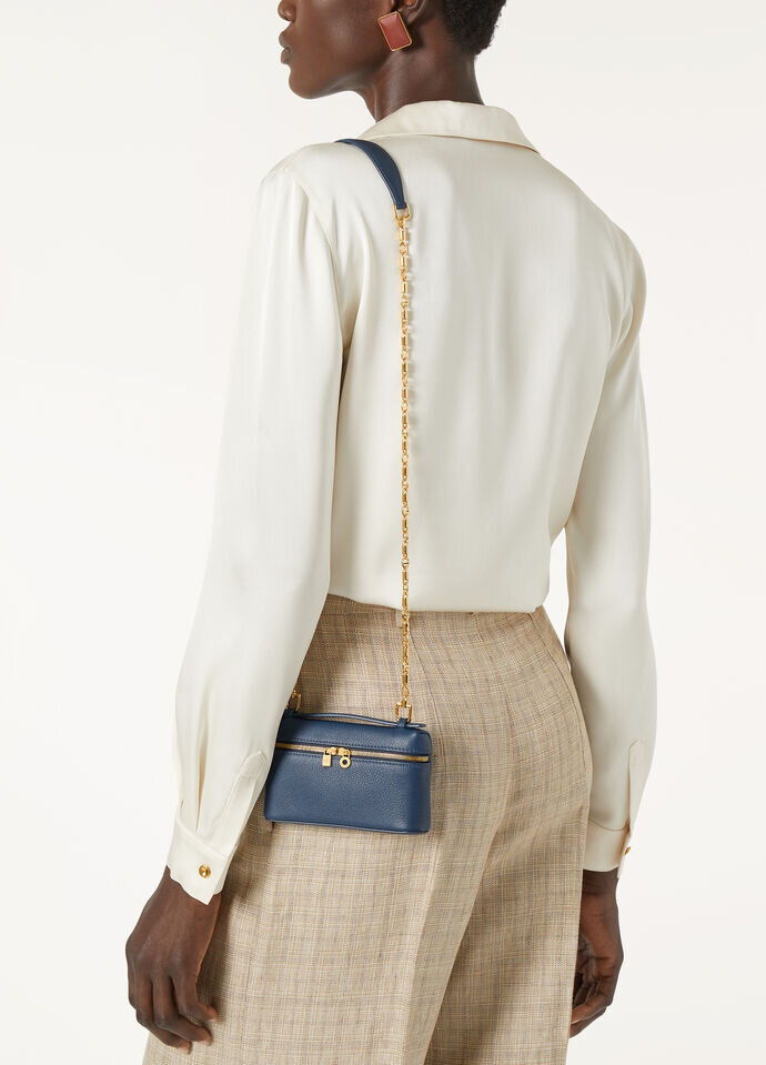 Inspired by the iconic shape of the Extra Pocket, this contemporary mini pouch with zip is crafted in sumptuous tumbled calfskin for everyday storage that’s both luxurious and practical. Its interior cardholder holds cards securely with added protection. Finished with a removable wrist strap, Loro Piana’s renowned craftsmanship ensures that the fine leather will only improve with time.