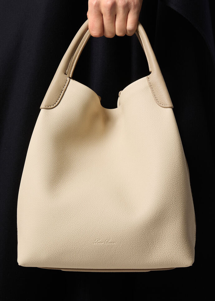 The Bale, a sophisticated bucket bag in large size with handstitched handles, inspired by Loro Piana’s textile heritage. Its silhouette, touch, and feel recall the cashmere bales, large bundles of the raw precious material. With a seamless design and unique lightness, the Bale bag is a celebration of supple softness and encapsulates the savoir-faire of the Maison. Effortless and casual, it is ideal for carrying all daily essentials with ease. The bag can be carried by hand or crossbody thanks to its removable strap and is crafted from supple calfskin leather.