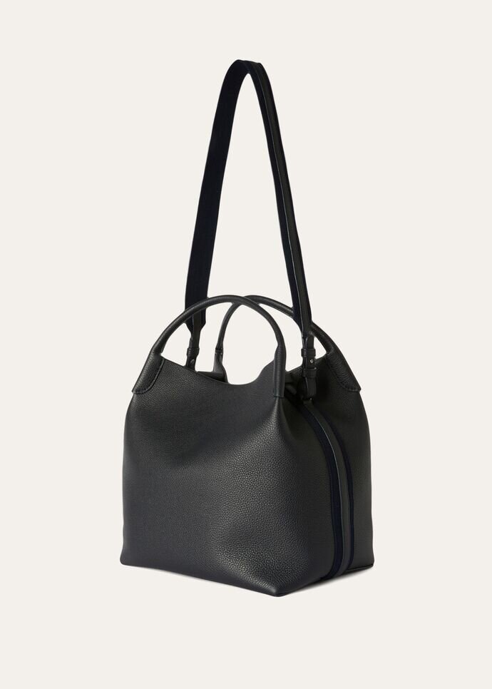 The Bale, a sophisticated bucket bag in a large size with handstitched handles, inspired by Loro Piana’s textile heritage. Its silhouette, touch, and feel recall the cashmere bales, large bundles of the raw precious material. With a seamless design and unique lightness, the Bale bag is a celebration of supple softness and encapsulates the savoir-faire of the Maison. Effortless and casual, it is ideal for carrying all daily essentials with ease. The bag can be carried by hand or crossbody thanks to its removable strap.This handcrafted style is made from calfskin with an exceptionally soft, uniform natural grain.