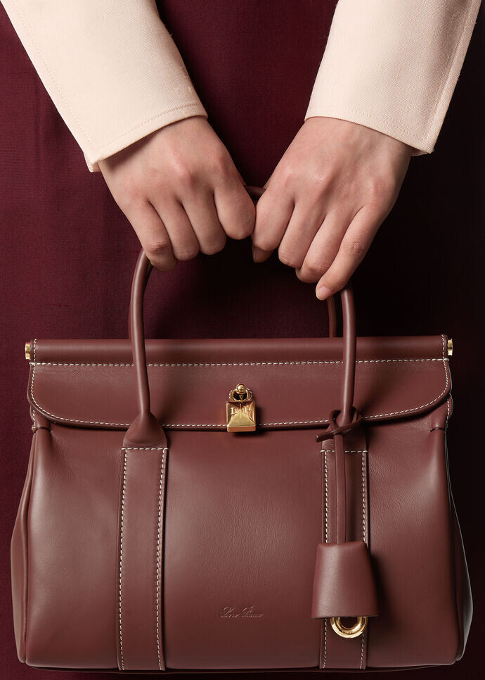 The Loom bag pays homage to Loro Piana’s centuries-old textile heritage, with the metal bar beneath the flap evoking the gentle cascade of fabric draped across an artisan’s loom – a subtle nod to the brand’s storied weaving techniques. Uniquely textured yet lightweight in exclusive calfskin, the refined padlock that closes the bag can be unfastened, giving it a more relaxed look. Loom can be worn closed or open without losing charm and personality. Even when worn unfolded, the bag gracefully closes by itself.