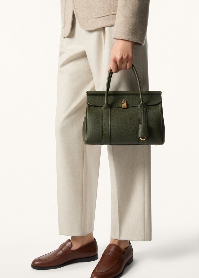The Loom bag pays homage to Loro Piana’s centuries-old textile heritage, with the metal bar beneath the flap evoking the gentle cascade of fabric draped across an artisan’s loom – a subtle nod to the brand’s storied weaving techniques. Uniquely textured yet lightweight in exclusive fine-grain calfskin, the refined padlock that closes the bag can be unfastened, giving it a more relaxed look. Loom can be worn closed or open without losing charm and personality. Even when worn unfolded, the bag gracefully closes by itself.