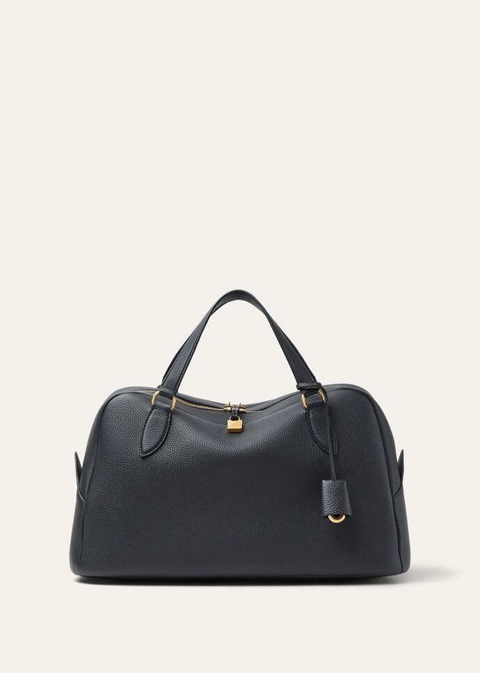 Here presented in a medium size, the Needle is Loro Piana’s interpretation of the bowling bag, complete with iconic LP charms. Evoking the Maison’s textile heritage, it is inspired by the bags used to carry knitting needles. It is constructed with soft sinuous lines, allowing for versatile wear over the shoulder or in the hand. Crafted from incredibly fine calfskin with a velvety suede lining, it boasts a harmonious silhouette and is made with a single piece of leather along the sides.