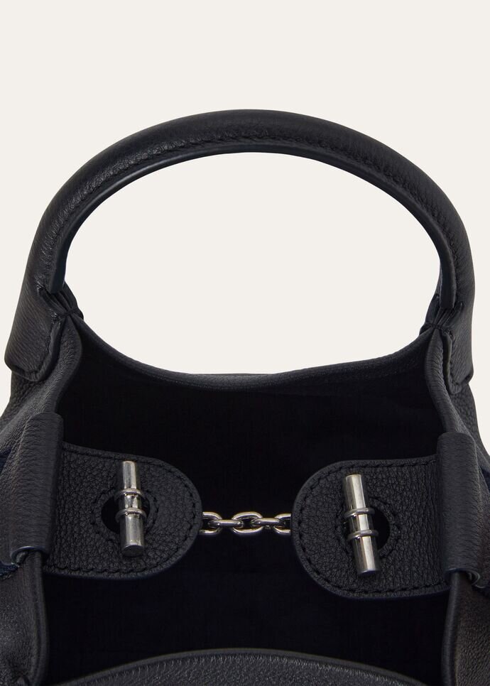 Loro Piana’s distinctive heritage is embodied in the Bale Bag — a new icon of laidback, timeless elegance. Its name and cube-shaped silhouette are inspired by cashmere storage bales, strongly evoking Loro Piana’s artisanal expertise. This handcrafted style is made from calfskin with an exceptionally soft, uniform natural grain. One-of-a-kind details and a bejewelled metal closure complete the look. The micro version of the Bale Bag combines elegance and tradition in a minimalist, modern design.