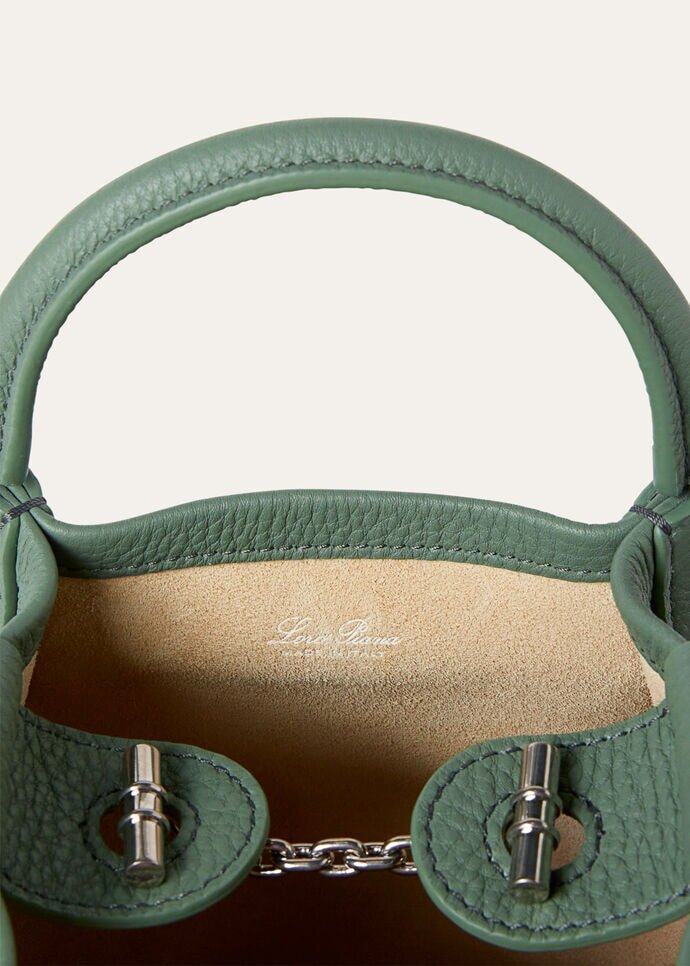 Loro Piana’s distinctive heritage is embodied in the Bale Bag — a new icon of laidback, timeless elegance. Its name and cube-shaped silhouette are inspired by cashmere storage bales, strongly evoking Loro Piana’s artisanal expertise. This handcrafted style is made from calfskin with an exceptionally soft, uniform natural grain. One-of-a-kind details and a bejewelled metal closure complete the look. The micro version of the Bale Bag combines elegance and tradition in a minimalist, modern design.