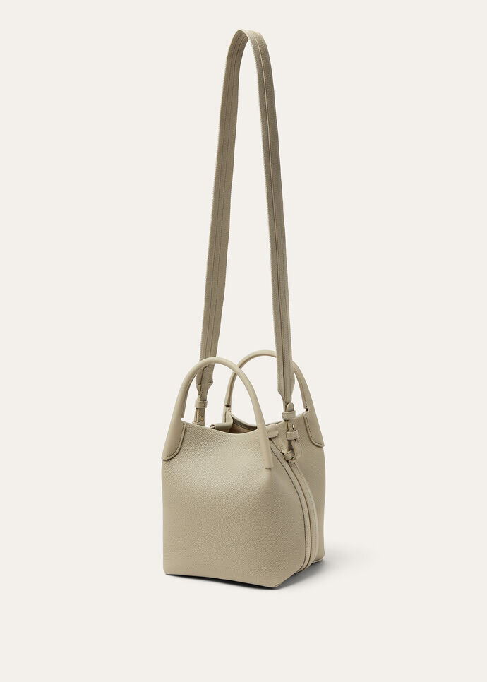 The Bale, a sophisticated bucket bag in a small size with handstitched handles, inspired by Loro Piana’s textile heritage. Its silhouette, touch, and feel recall the cashmere bales, large bundles of the raw precious material. With a seamless design and unique lightness, the Bale bag is a celebration of supple softness and encapsulates the savoir-faire of the Maison. Effortless and casual, it is ideal for carrying all daily essentials with ease. The bag can be carried by hand or crossbody thanks to its removable strap.
