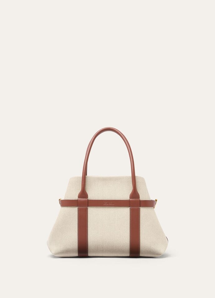 An extension of the iconic Ghiera family, the Ghiera Shopper offers the perfect blend of elegance and functionality for everyday use. Crafted from cotton and linen, its generous volume makes it ideal for both work and play, offering versatility. The Ghiera ring closure creates a chic ‘belt’ effect, allowing the bag to be worn open for a more relaxed style or closed for a more sophisticated look. It can be worn over the shoulder or held in the hand for effortless sophistication.