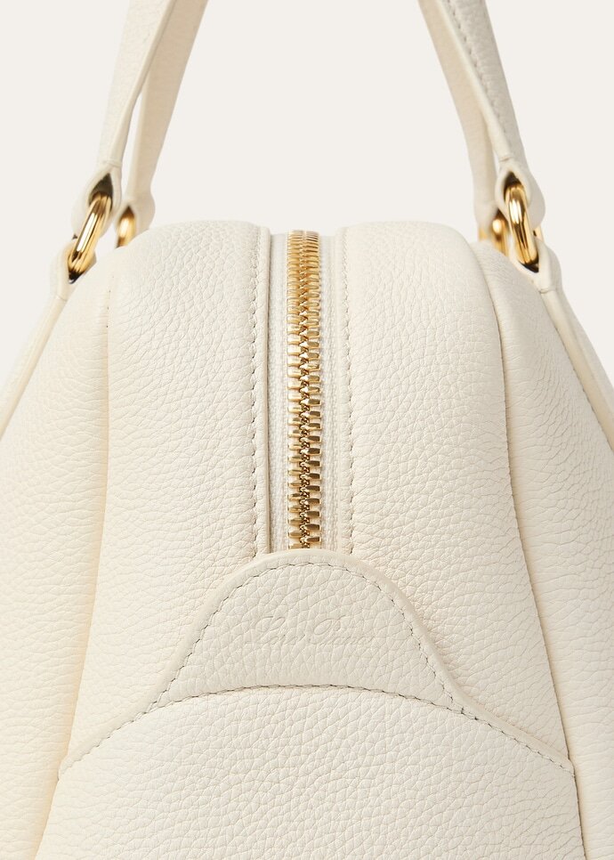 Here presented in a small size, the Needle is Loro Piana’s interpretation of the bowling bag, complete with iconic LP charms. Evoking the Maison’s textile heritage, it is inspired by the bags used to carry knitting needles. It is constructed with soft sinuous lines, allowing for versatile wear over the shoulder or in the hand. Crafted from fine-grained leather with a velvety suede lining, it boasts a harmonious silhouette and is made with a single piece of leather along the sides.