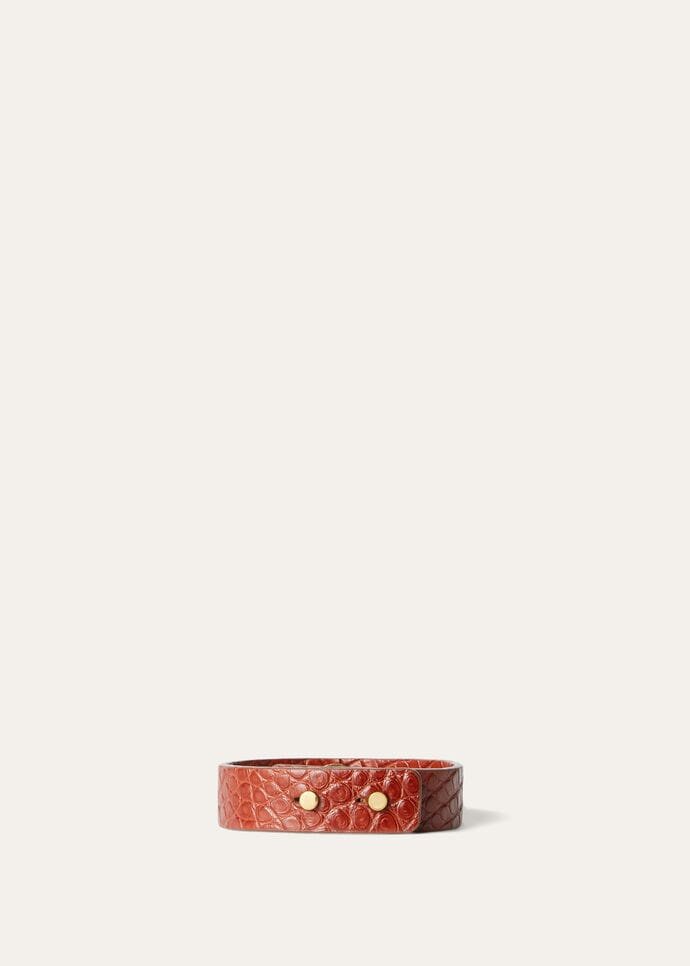 Alligator leather contrasts elegantly with sublime calfskin and brass in this bracelet, adorned with rounded charms inspired by Loro Piana’s iconic Extra bag. Slide it onto your wrist for a touch of texture and personal style.