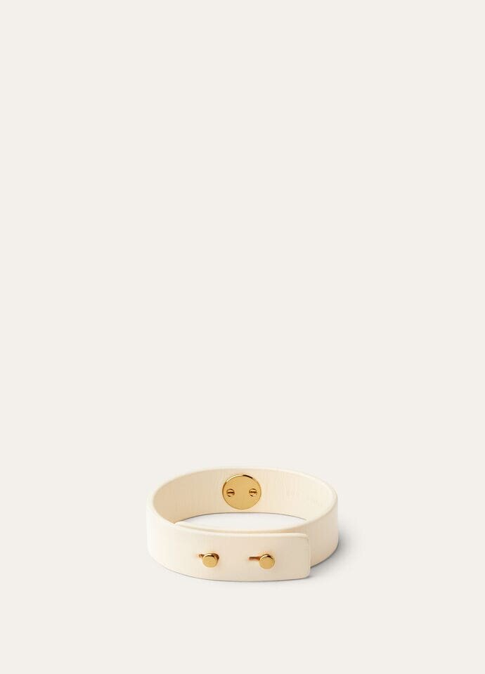 Sublime calfskin contrasts with brass in this bracelet, adorned with rounded charms inspired by Loro Piana’s iconic Extra bag. Slide it onto your wrist for a touch of texture and personal style.