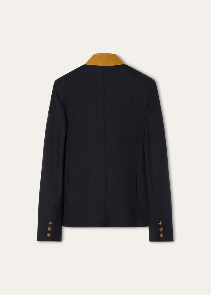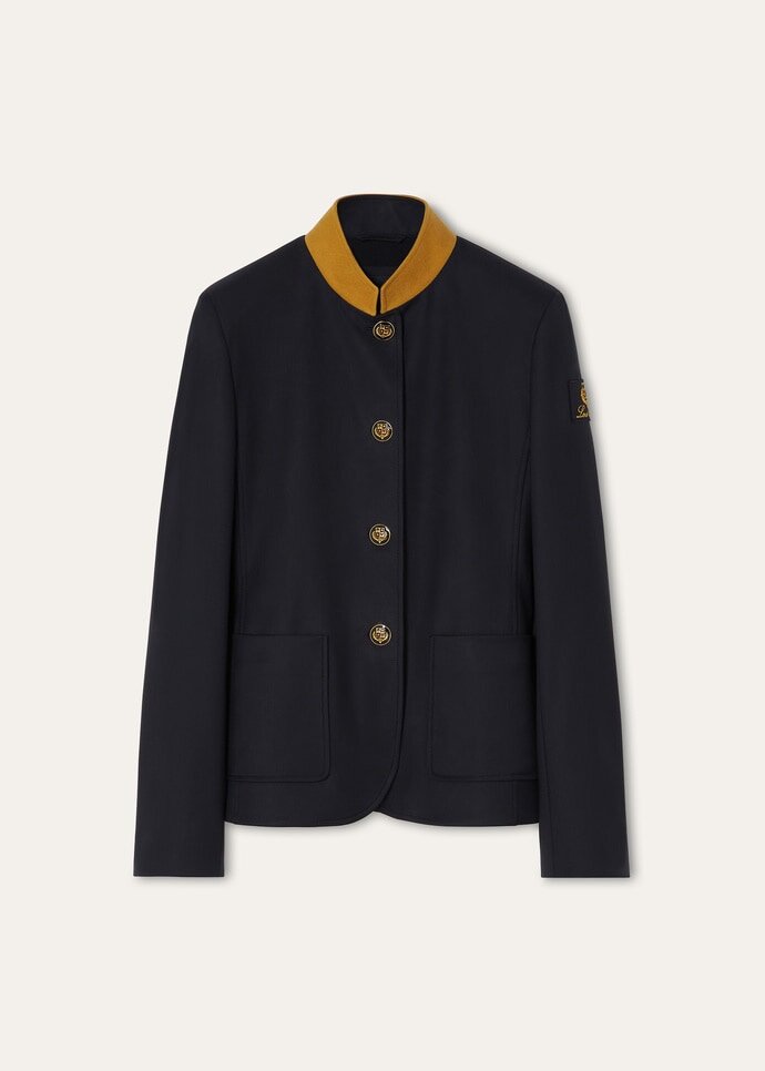 Styled with a standing collar and structuring shoulder pads, the Vade riding jacket reimagines an equestrian classic through a refined lens. The fitted silhouette is tailored from a high-performing fabric fused with wool and graphene for supreme thermoregulating properties and enhanced comfort. Fully lined in mesh, it guarantees optimum breathability and is accented with a signature crest patch on the left sleeve for a distinctive Loro Piana touch.