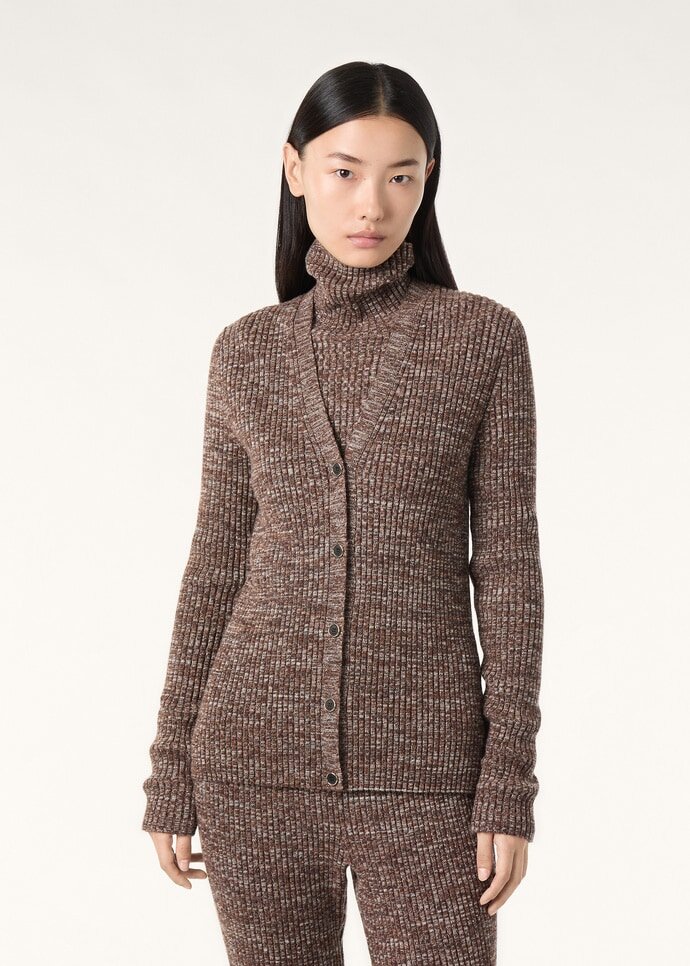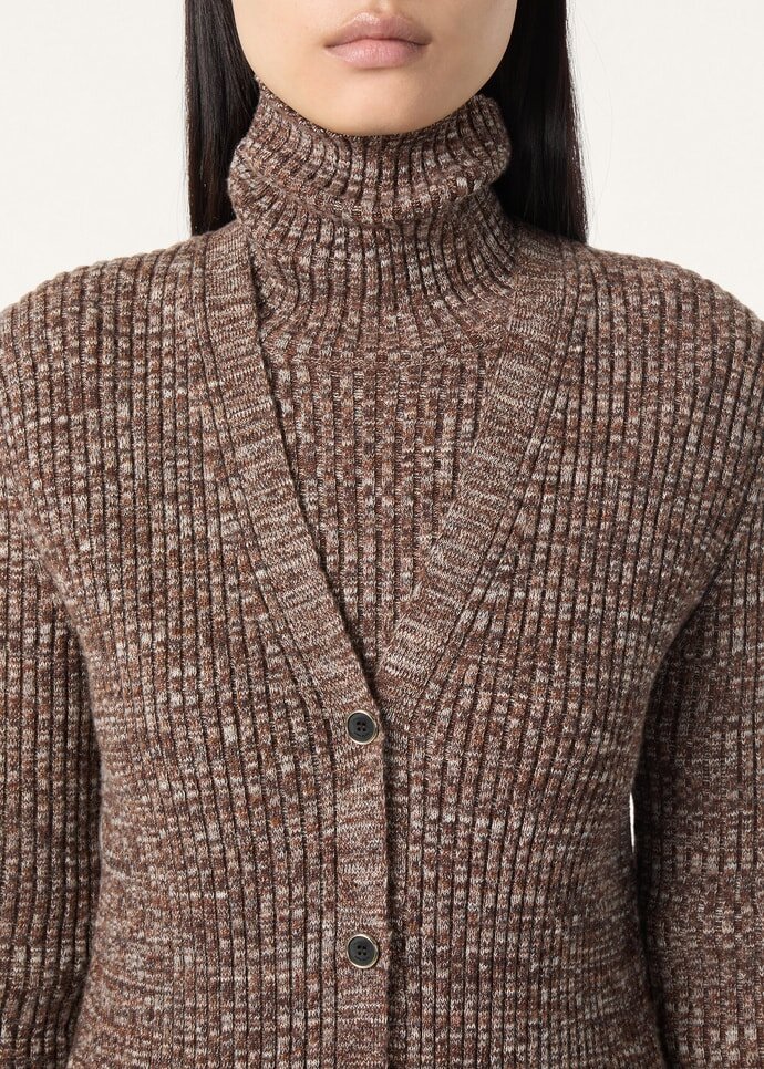 Ideal for cold-weather layering, the Banff cardigan is spun from sumptuous cashmere, worked in a rib knit that follows the line of its fitted silhouette. Its yarns, a combination of smooth-spun and slubbed fibers, lend a subtle irregular finish. The garment is finished with heirloom Sergio horn buttons, each framed by a polished metal ring, for a discreet note of distinction.