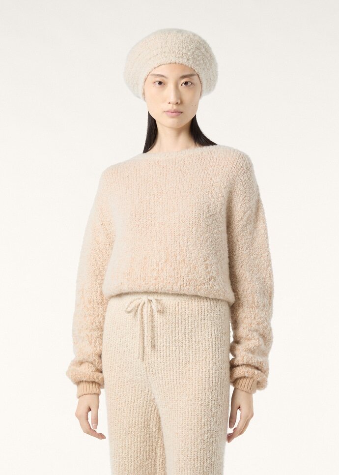 Worked with a subtle jacquard motif, this sweater from the Cocooning selection is rendered in Loro Piana’s AirCash fabric, enveloping the body in the softest of luxuries. The exceptional fabric blends cashmere with gilded Eri silk, infusing the boat neck silhouette with enveloping warmth and a delicate, smooth feel. Ribbed trims on the neckline and cuffs finish the piece with a note of quiet refinement.