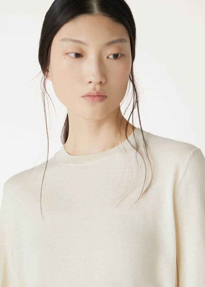 Spun from the first delicate downy tufts of the cashmere kid, Baby Cashmere is an exquisite rarity – ethereally soft, ultra-fine fibers that whisper of nature’s most precious gifts. Expertly crafted from this special yarn, this regular-fit crewneck sweater embodies refined lightness while providing enveloping warmth through its unique, featherweight construction. Presented in the fiber’s natural, undyed hue, it promises sublime, relaxed luxury.