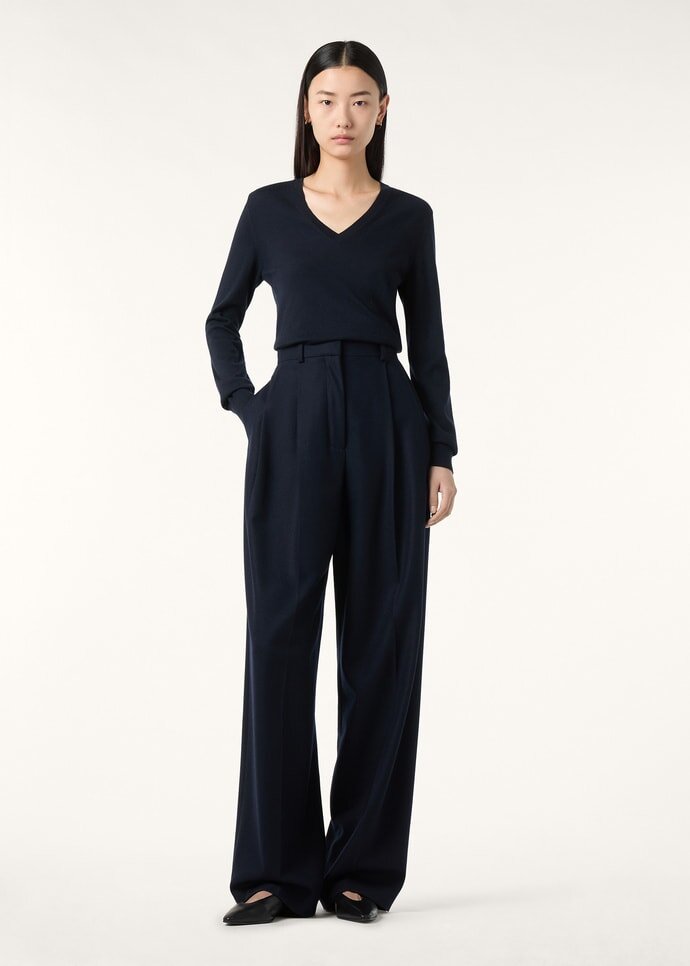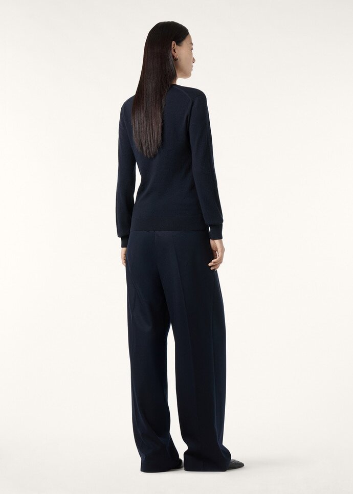 V-neck sweater made from extremely lightweight, plain-knit cashmere yarn. Its comfortable, minimalist cut and slightly elongated regular fit is perfect under a jacket.