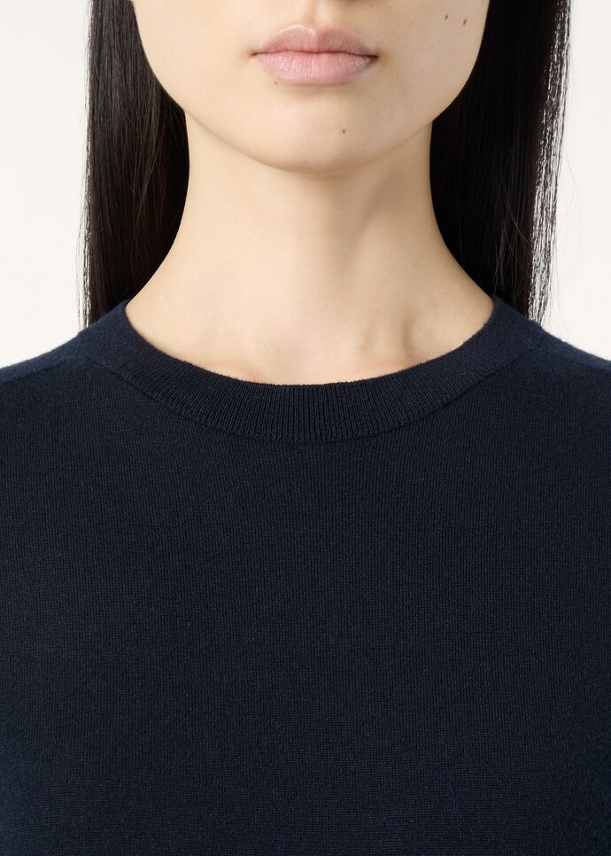 Crewneck made from plain-knit cashmere. This lightweight, versatile style is flowing and comfortable. Featuring three-quarter length sleeves, it is perfect under a jacket in casual looks.