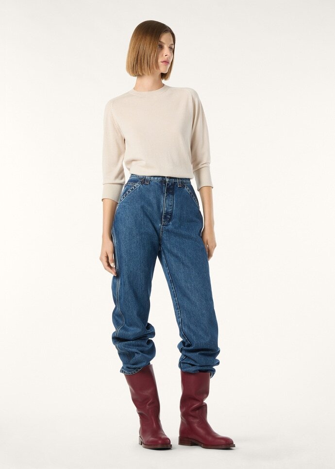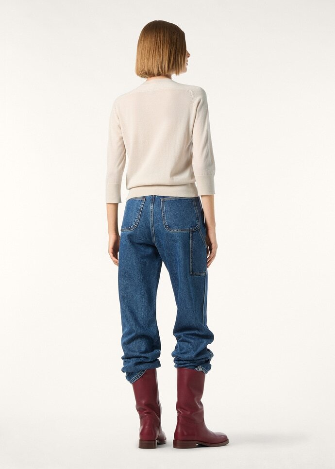 Crewneck made from plain-knit cashmere. This lightweight, versatile style is flowing and comfortable. Featuring three-quarter length sleeves, it is perfect under a jacket in casual looks.