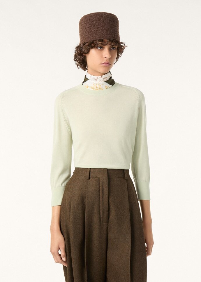 Crewneck made from plain-knit cashmere. This lightweight, versatile style is flowing and comfortable. Featuring three-quarter length sleeves, it is perfect under a jacket in casual looks.