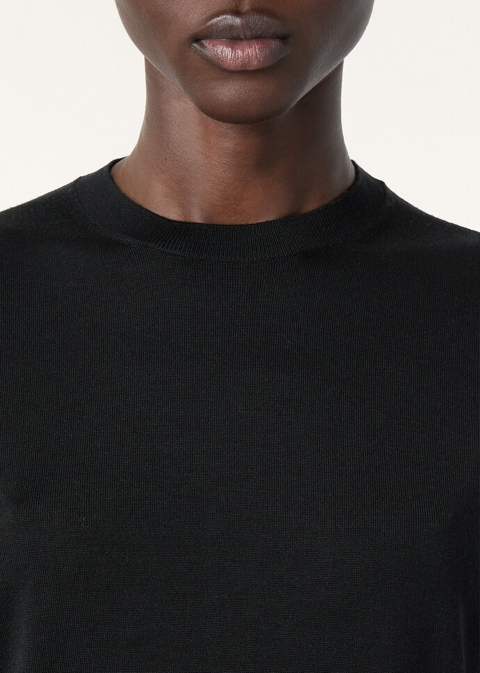 A light, relaxed, and versatile layer, the Sottile sweater blends everyday comfort with timeless looks. It has a neat crewneck profile framed with short sleeves and falls to a regular-fit bodice, whose fluid drape is amplified by the unique blend of silk, wool, and cashmere. The fine-worsted yarn has a refined finish and bright color.