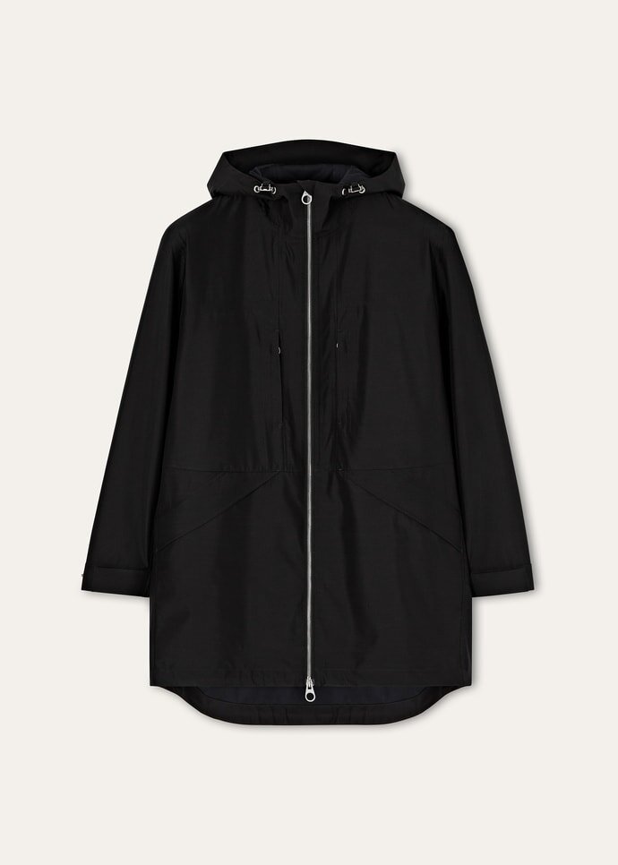 The Deven parka delivers lightweight protection in a sleek, contemporary silhouette. Crafted from Silk Tech 3L Storm – a technical Habutai silk treated with Storm System® – it offers a smooth, luminous finish with water-resistant performance. Thoughtfully designed details enhance both function and refinement, from the adjustable hem to the precisely executed heat-sealed detailing on the shoulder for a subtle signature accent.
