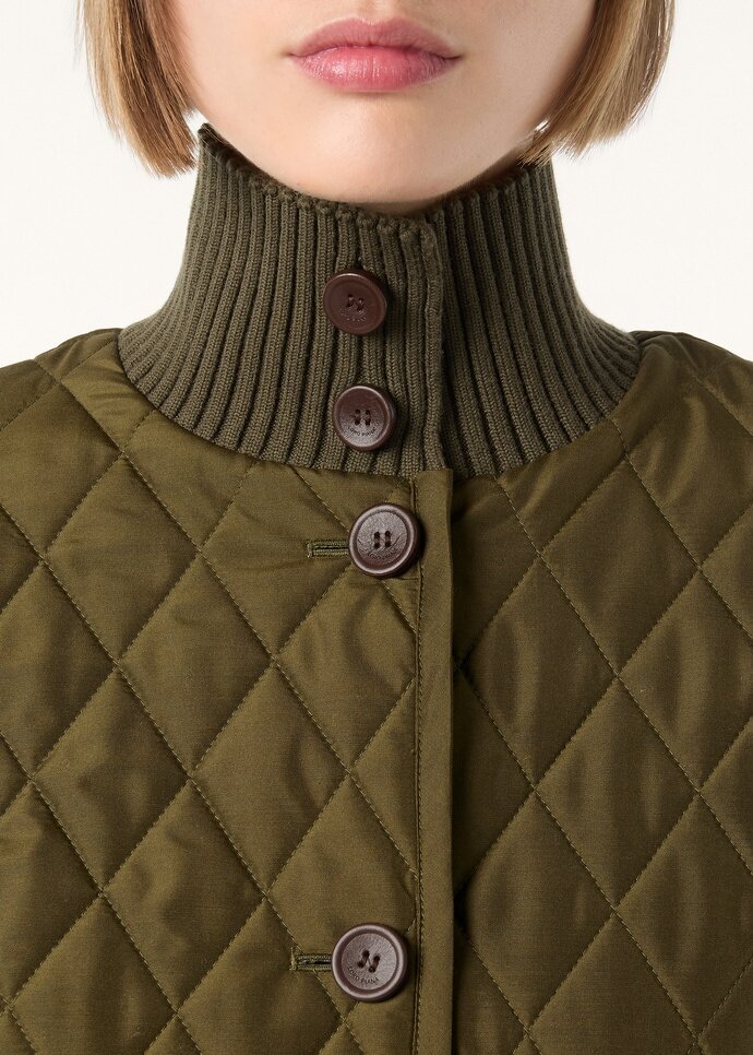 Fusing technical finesse with the finest raw materials, the Jamison jacket ensures elegant resilience through shifting weather. In lightweight Habutai silk with a water-resistant Storm System® finish, this caban design is lightly padded and diamond-quilted on the body to balance warmth while maintaining a clean, minimal line. The ribbed cashmere collar tops the design off on a note of ultimate insulation.