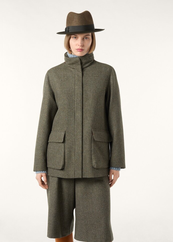 Versatile and comfortable, the Voyager jacket is a refined caban design suited for the city and travel alike. Its tweed fabric combines the sumptuous touch of cashmere with the strength of Wish® wool and luster of silk. The result is an elegant mélange of hues, expertly woven for a tactile touch.