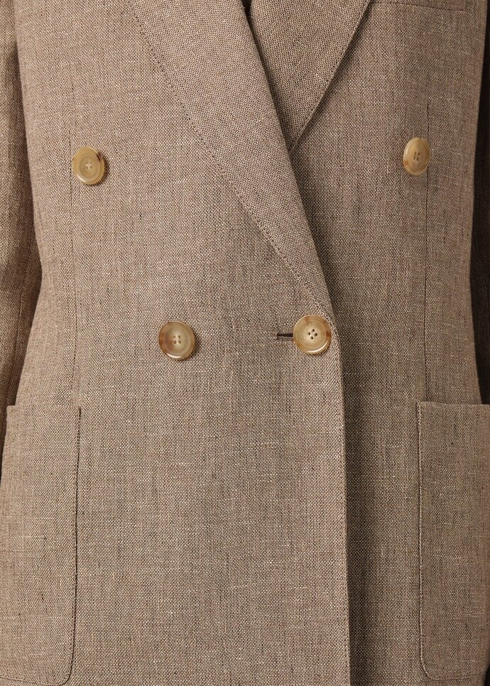 Tailored elegance meets ease in the double-breasted Genny blazer. It is interpreted in a special linen crepe crafted by the experts from Solbiati and has been worked for a sophisticated rippling effect throughout. The garment is piece-dyed for uniform coloration and finished with a classic collar while lapels provide a final nod towards suiting codes.