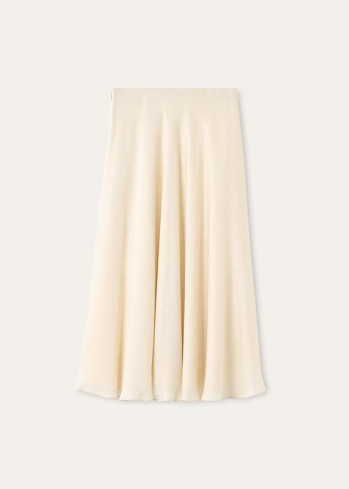 Cut on the bias, the Erika skirt casts a flared silhouette that moves with graceful fluidity. Its silk jacquard fabrication is worked with a complex weave – a raised thistle pattern over a lightweight gauze base, creating a textural contrast that plays with opacity and light. The design is anchored by a discreet inner waistband in grosgrain, and lined in silk for a refined feel against the skin.