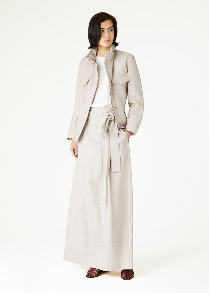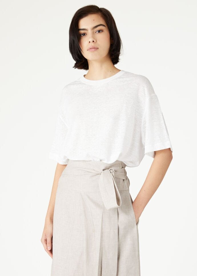 Spacious, loose-fitting, short-sleeved T-shirt made from pure linen jersey. The fresh, flowing fabric is treated with an extraordinarily lightweight, soft aloe finish.