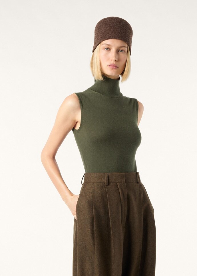 A delicate interplay between strength and delicacy, the Piuma top choreographs an exquisite pas de deux. This sleeveless turtleneck embodies lightweight style through its sumptuous cashmere fabric with an ethereal consistency. New details and proportions take this elegant, classic layer to new heights when paired with tailored outerwear.