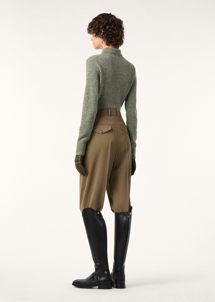 Elegant and clean-lined, the Andris pants from the Loro Highlands Capsule collection are cut from wool twill mouliné, balancing texture with depth of color. The preformed waistband lays a refined foundation for the relaxed carrot silhouette, shaped with a wide, pressed-crease leg that tapers neatly to the ankle.