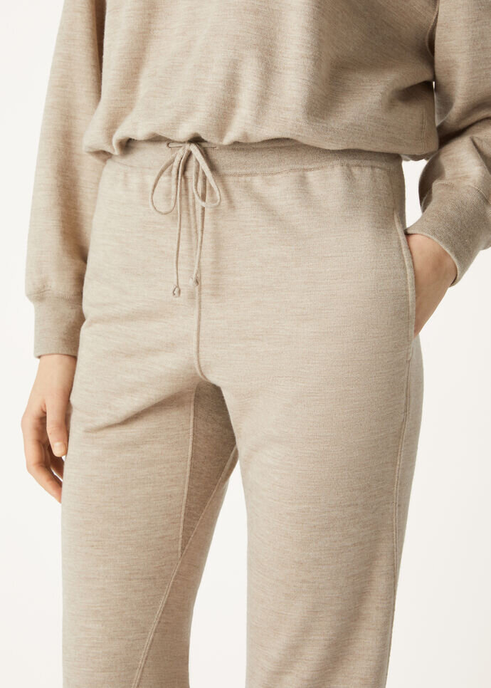 The Cocooning pants envelop you in that rarest of luxuries – the ease of being truly at peace. Designed for active days, these knitted jersey cashmere fleece pants feature a distinctive front dart detail down the inside leg. Finished with a ribbed waistband for a sporty yet refined fit.