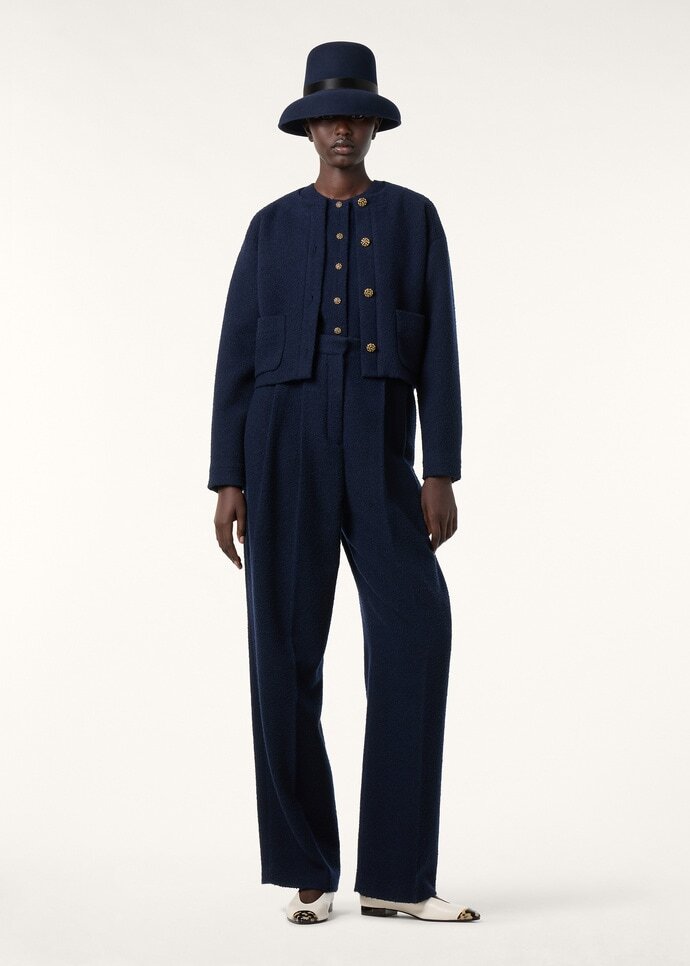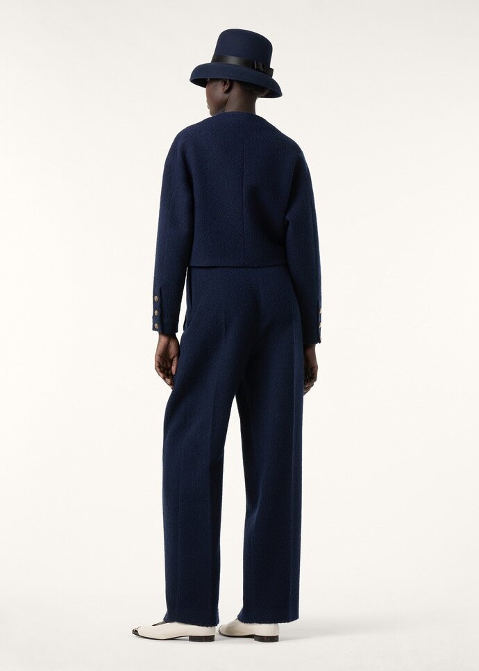 Exuding effortless elegance, these Kurt pants are cut with a generous wide leg. In textured bouclé yarn, they are spun with cashmere and wool , and are lightly tumbled to enhance their full drape and soft hand. Merging refined tailoring with relaxed ease, the silhouette is finished with an elasticated drawstring waistband for personalized comfort.