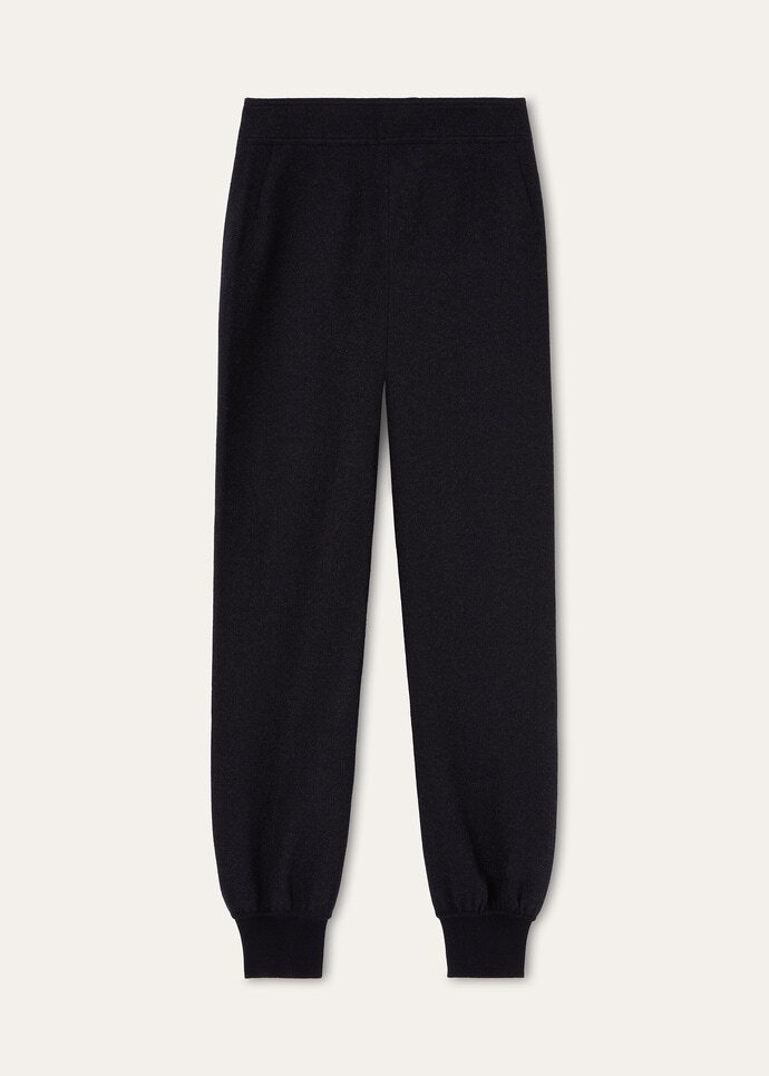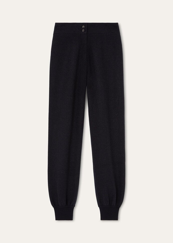 Crafted from double jersey Novalis using pure cashmere yarns, the Rio Bodro pants are lightweight yet luxuriously cozy. The straight-leg silhouette features a fabric waistband and ribbed cuffs for a hint of sportiveness. The design is neatly finished with a zip fastening and discreet horn buttons.