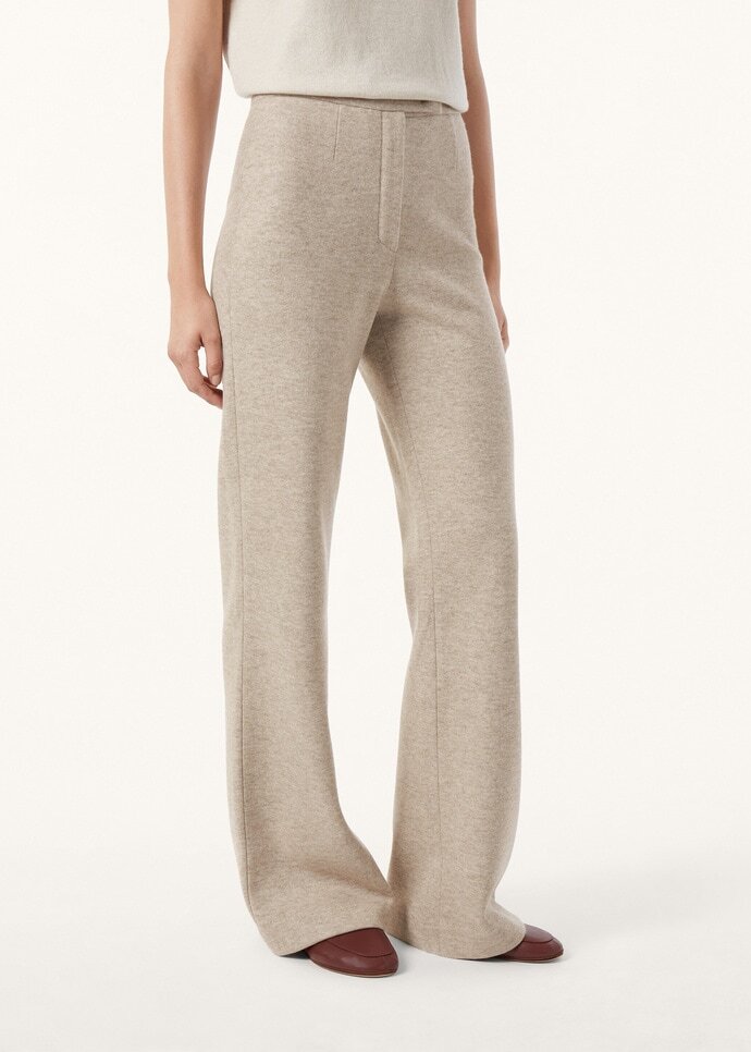 The quiet, natural elegance of the immense New Zealand landscape is embodied in a collection featuring enveloping, flowing silhouettes and a tailored allure. Crafted from exceptionally lightweight and soft Jersey Novalis double cashmere, a naturally stretchy fabric, every piece delicately embraces the wearer. The Robin pants are defined by a straight cut. Their double-faced classic construction enhances the luxury cashmere fibers. When worn with the matching Ayla jacket, the result is a comfortable, formal look.