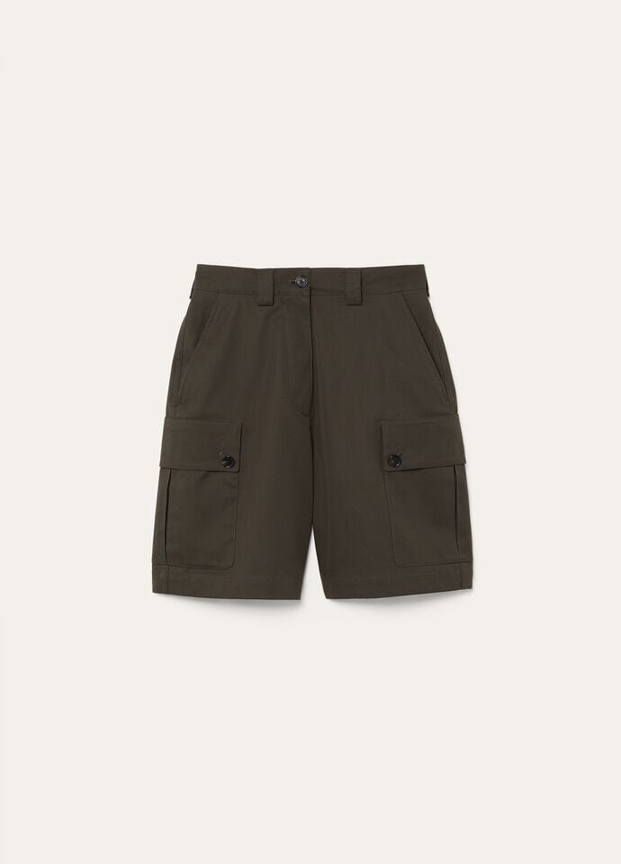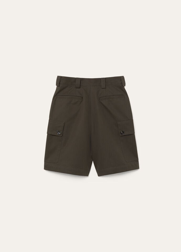 A summer classic, the Willy shorts are crafted from cotton gabardine, a structured yet soft fabric that undergoes diamond sanding for a subtly matte, lived-in finish. They feature large cargo-style patch pockets with flaps, offering an elevated utilitarian touch. A hidden zip and horn button closure maintains a clean finish.
