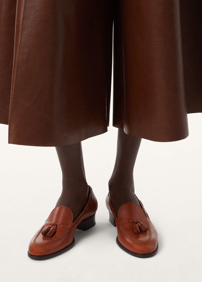A timeless interpretation of a classic design, the Serge Tassel loafer is characterized by its tapered line and matching leather tassel. It comes in Box Prestige Calfskin, noted for its natural luster and firm structure that refines the sculpted form. The discreetly heeled silhouette reveals a meticulously woven instep, in a refined showcase of the Maison’s artistry.