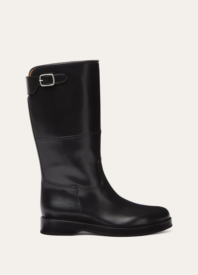 The Lupo boots are meticulously crafted from fine calfskin that has been treated with a natural wax finish for a lustrous sheen and crisp, subtly irregular texture. The low bootleg is finished with an adjustable buckle strap, reminiscent of an elegant belt, while the round toe and stitched panels showcase fine craftsmanship. A timeless silhouette.