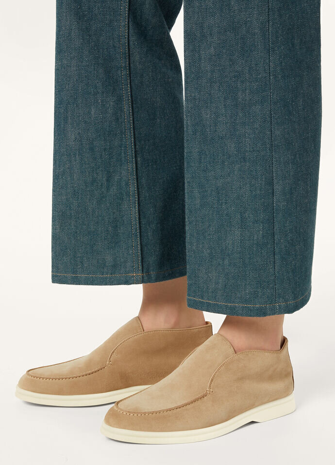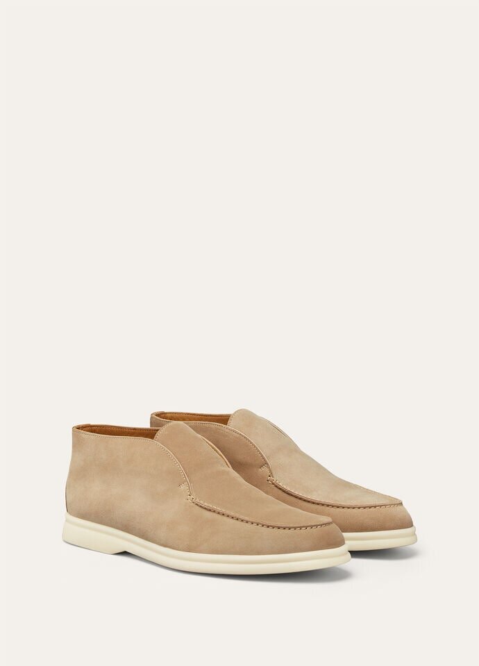 Soft suede ankle boots. Inspired by Loro Piana men’s footwear, they feature a nappa calfskin inner. Light rubber soles and a patented opening with elastic hidden under the tongue. An extremely sporty style.