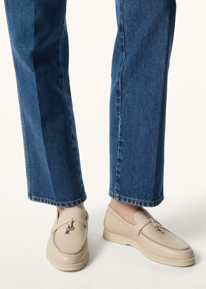 Flexible, breathable and highly durable loafers made from soft deerskin. They are enhanced with rubber soles — a common feature of all Loro Piana sportswear shoes. The front saddles are embellished with mini My Charms.